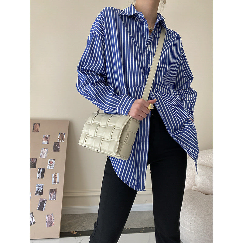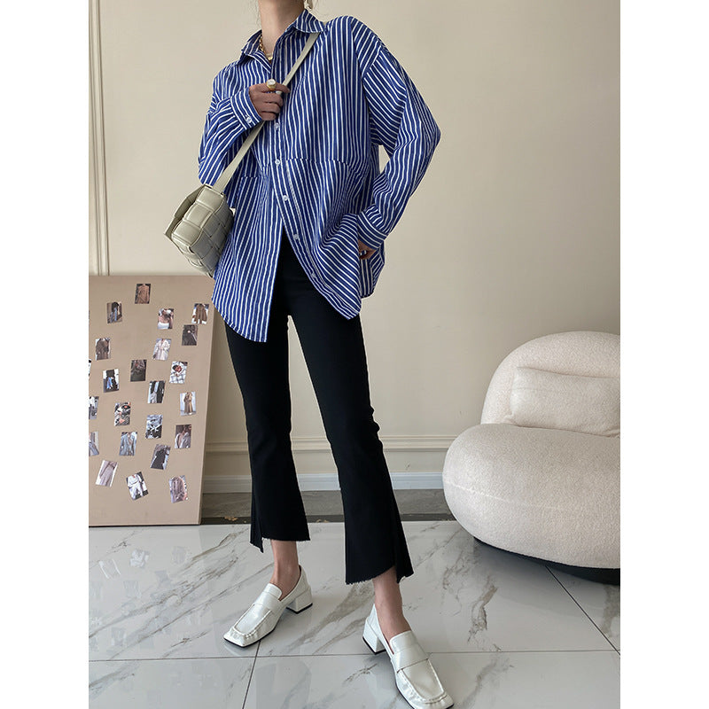 Sinan Klein Blue Striped Shirt – Niche Spring Long Sleeve