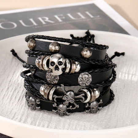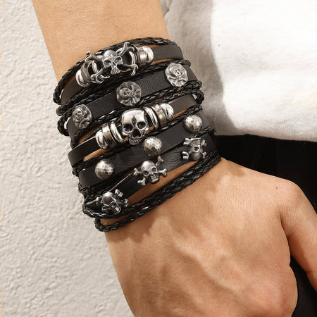 Skull Leather Bracelet β Halloween Punk Style for Men