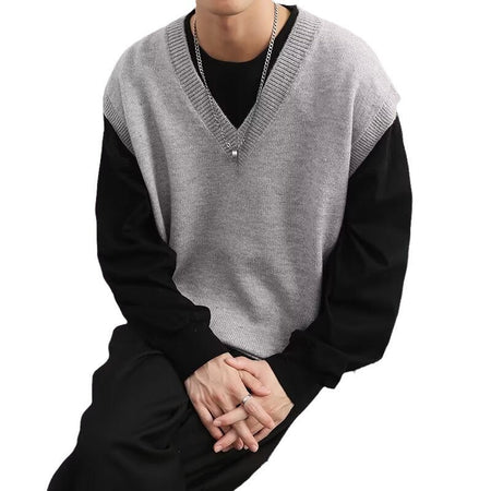 Sleeveless Sweater – Korean Style Loose V-Neck Knit Vest