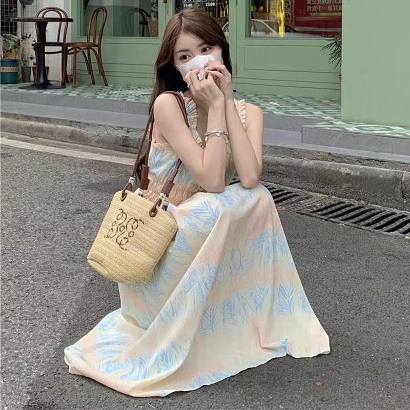 Designed with a suspender style and a Polo collar, this skirt offers both comfort and style. The princess sleeves add a romantic, airy touch, while the mid-length cut flatters every figure, making it perfect for casual outings or special events.