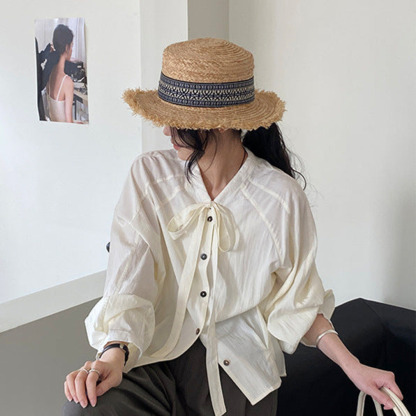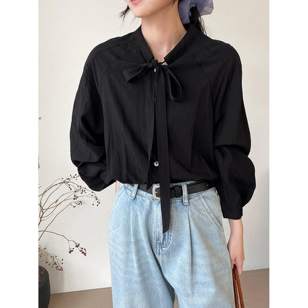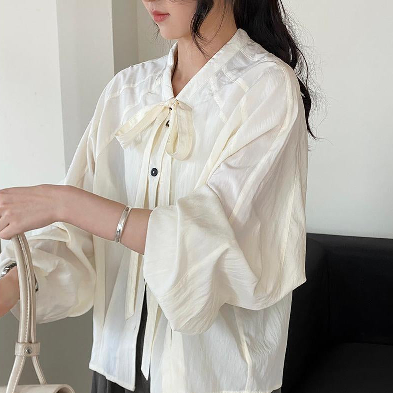 So Early Bow Lace Shirt โ Elegant Korean Spring Blouse