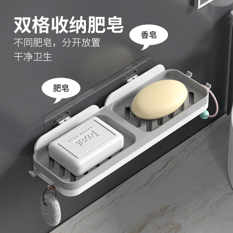 Double-Row Wall-Mounted Soap Rack with Hooks