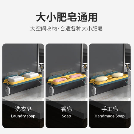 Maximize storage with this double-row wall-mounted soap rack π§²π§Ό. Equipped with strong suction cups and non-marking stickers, it holds soap securely while adding hanging space.
