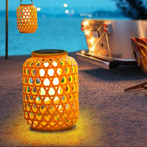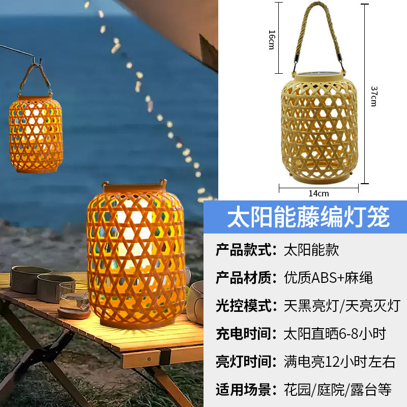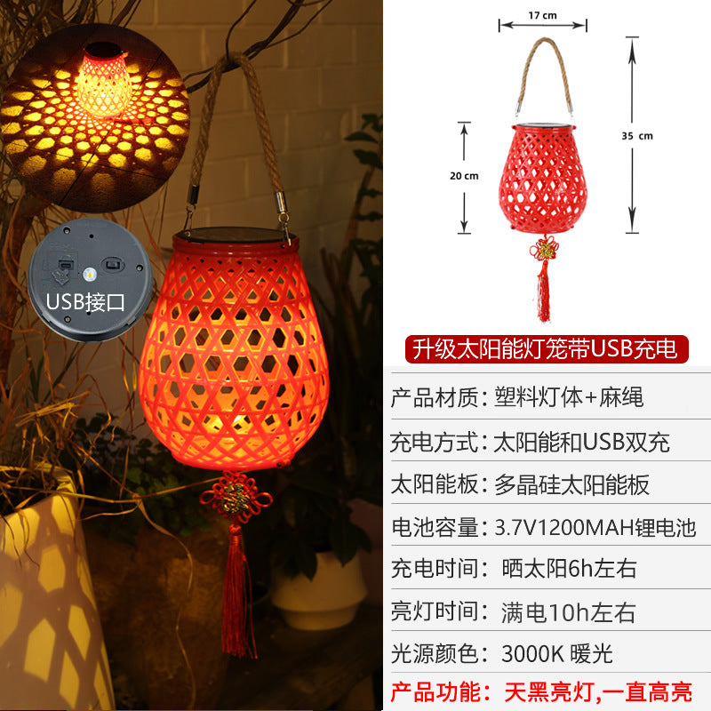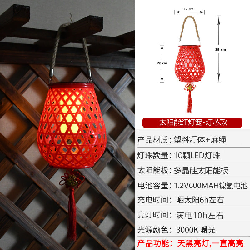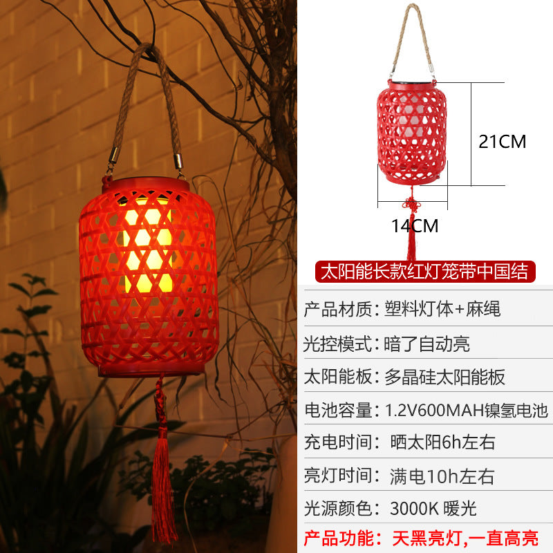 Solar Rattan-Style Chinese Hanging Lanterns
