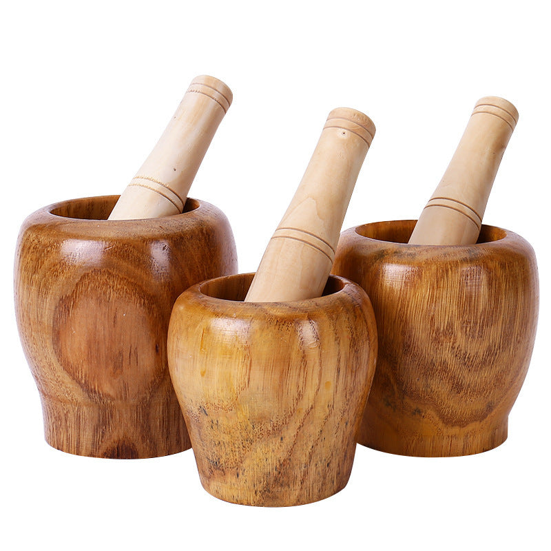 Solid Wood Garlic Mortar – Manual Garlic Mash Pot