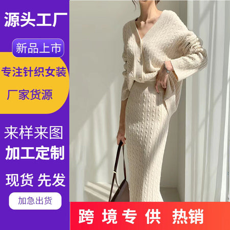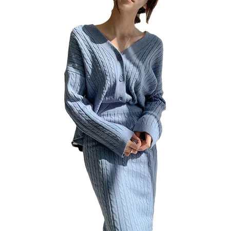 Korean V-Neck Cardigan & Skirt Two-Piece Set