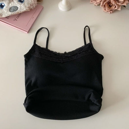 Elevate your wardrobe with the Spice Girl Pure Desire Lace Camisole—a delicate, sleeveless top designed for a slim fit and feminine appeal. Featuring a charming bow detail and built-in chest pads, this camisole offers both style and support.