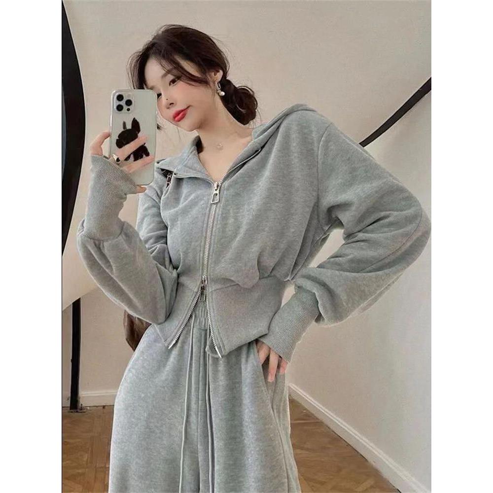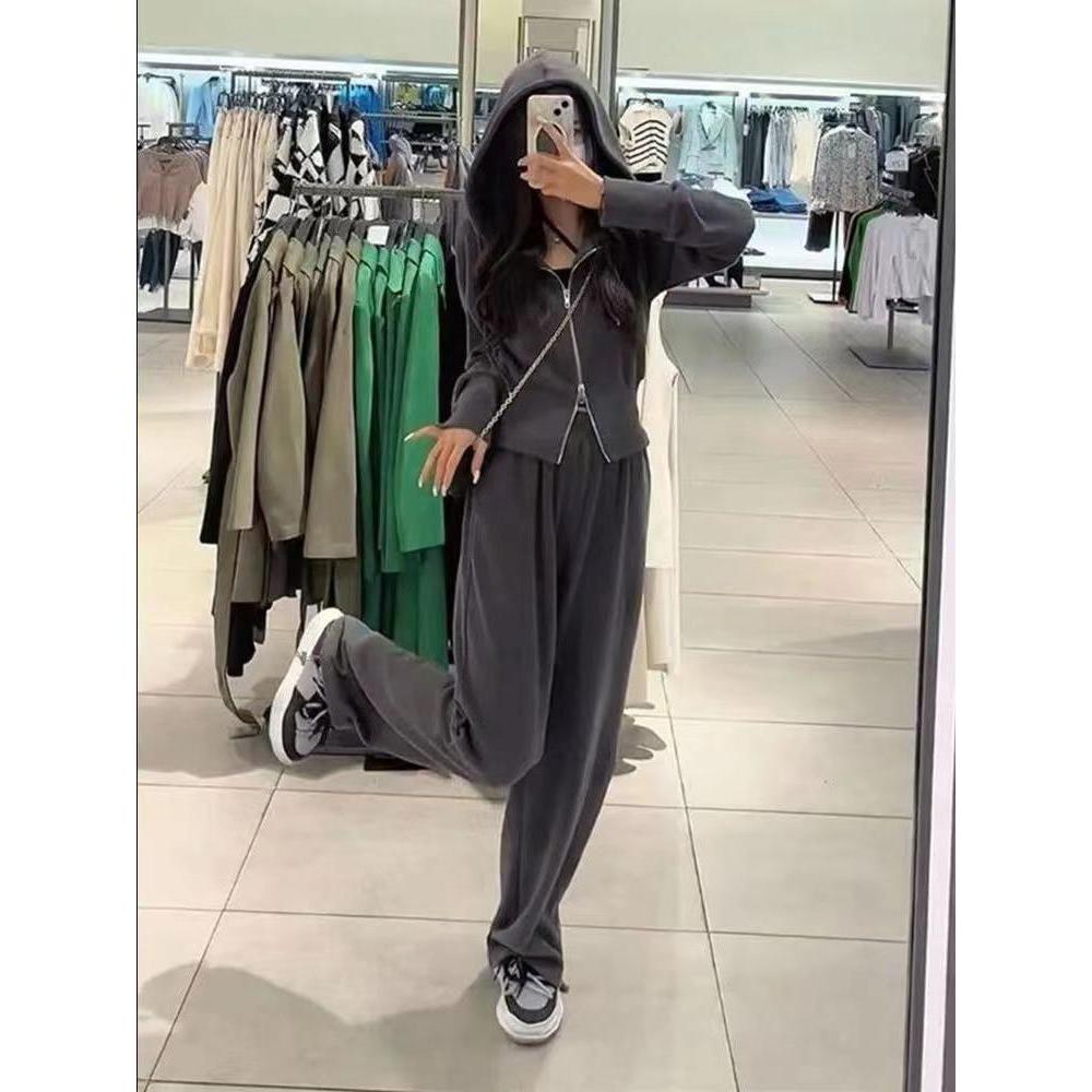 Korean Style 2-Piece Set – Zipper Sweater & Wide Pants 👟🧥