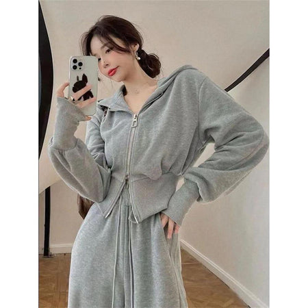 Stay effortlessly stylish and comfy with our 2023 Autumn Korean-Style Sports Set for Women! 🍂🇰🇷 This trendy two-piece outfit includes a loose-fit zip-up sweater and matching wide-leg pants — the perfect combo of comfort and cool.
