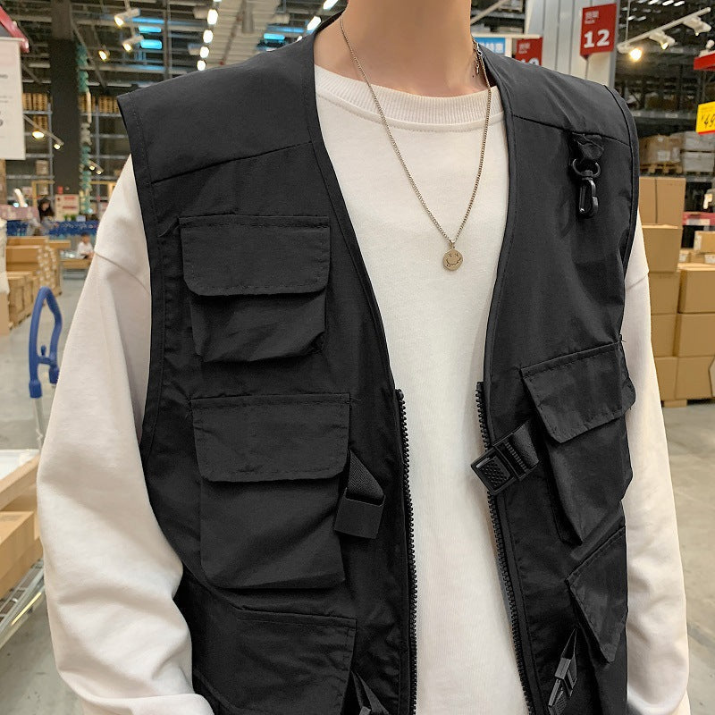 Menโs Hip-Hop Work Vest โ Korean Style Functional Sleeveless
