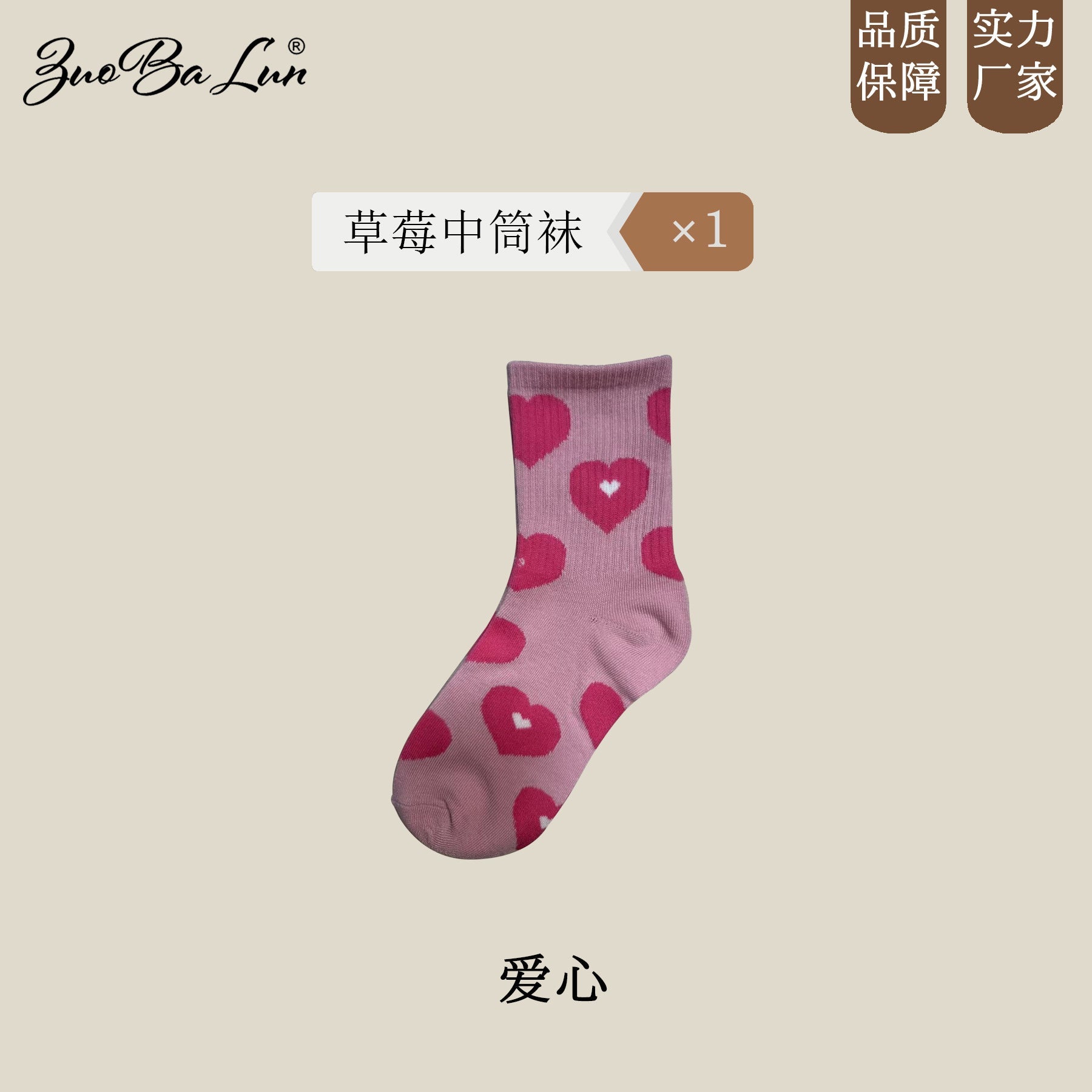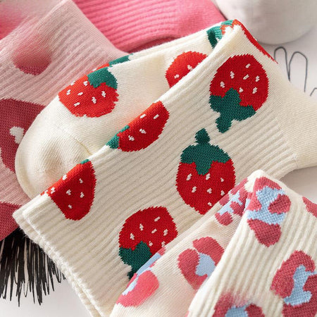 Add a pop of cuteness to your look with 🍓 Strawberry Love Socks! These fashion-forward mid-length socks feature a kawaii Japanese-style design with heart and strawberry patterns. Perfect for matching with skirts, sneakers, or cozy indoor wear.