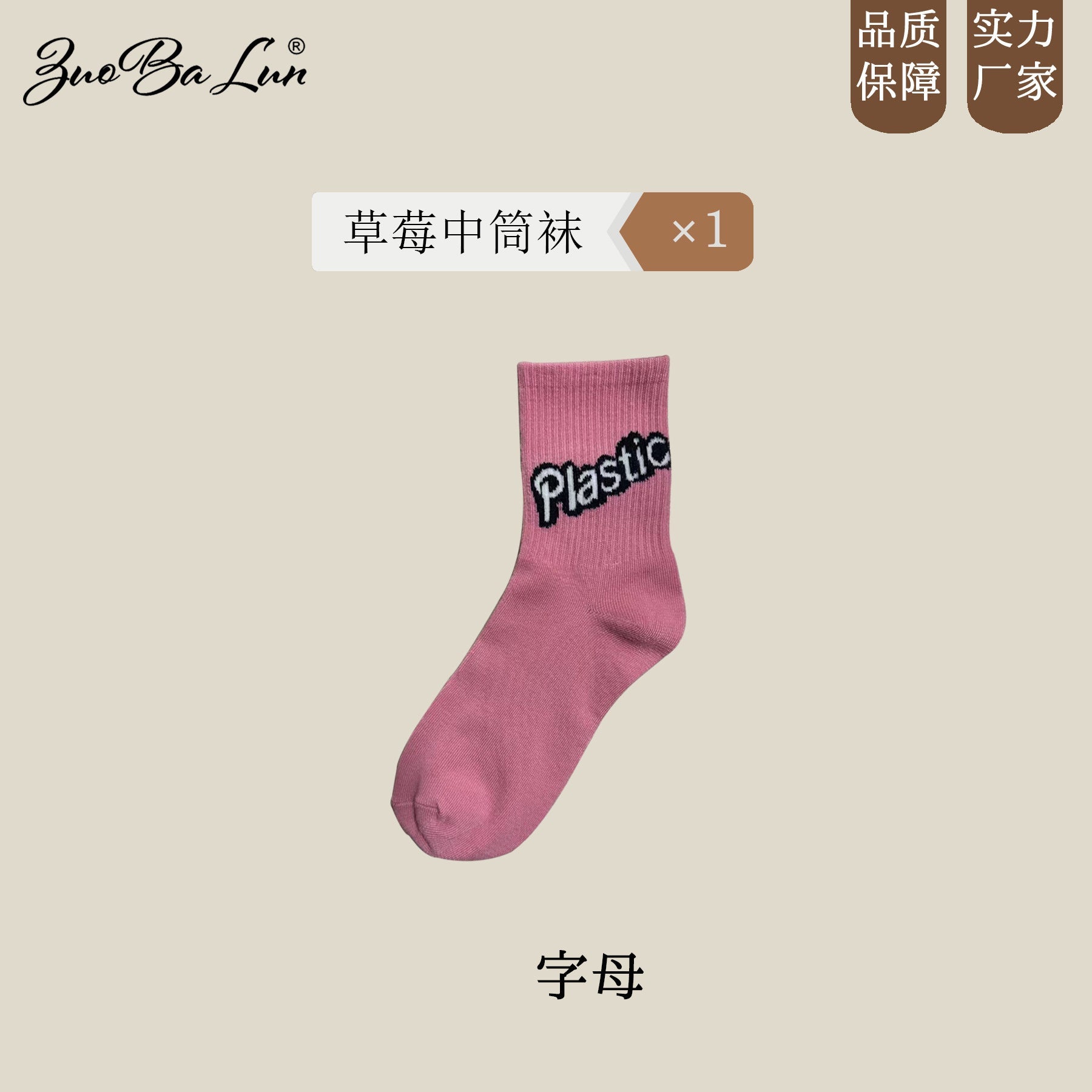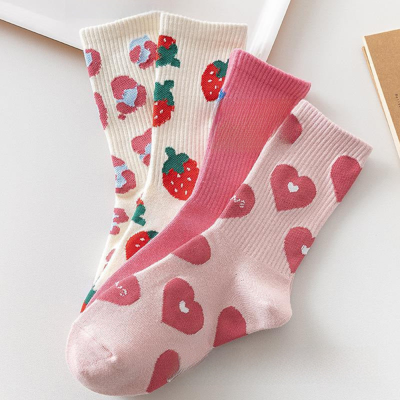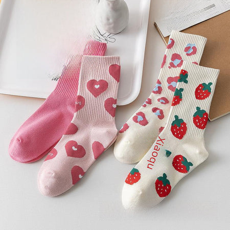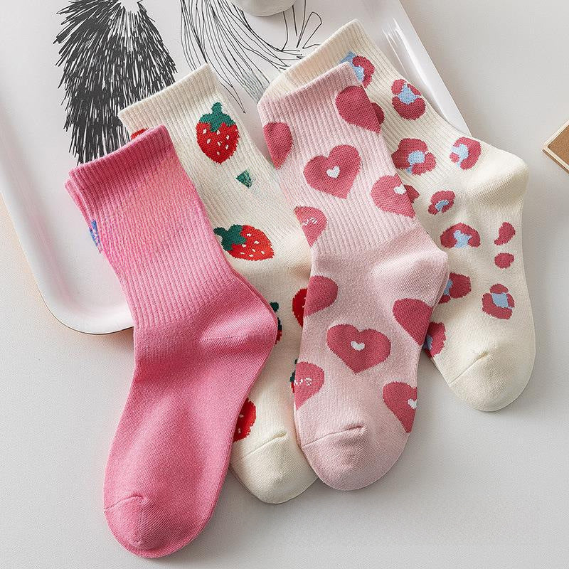 (Pack of 4)-Cute Strawberry Love Socks – Pink Mid-Length Style