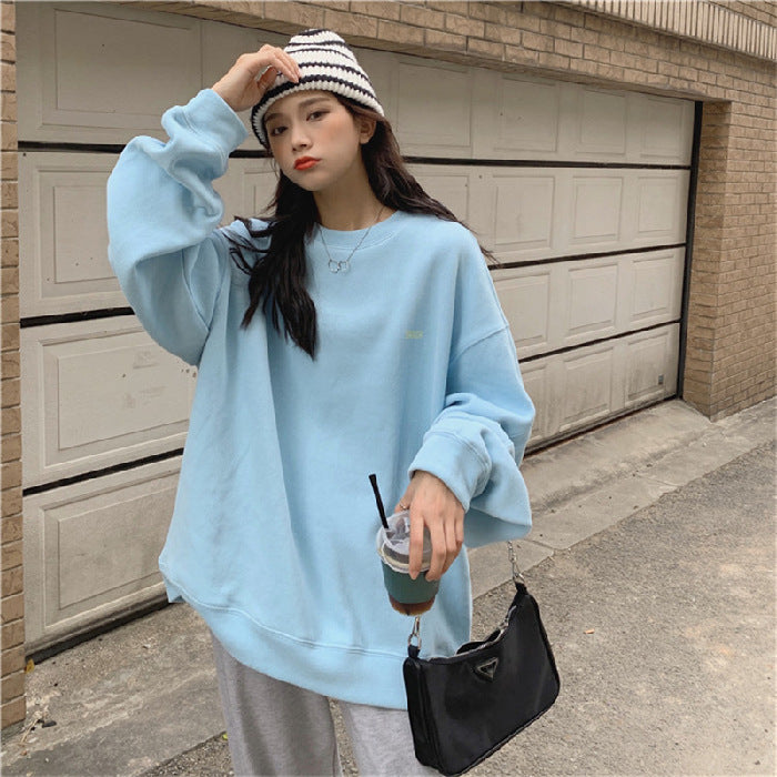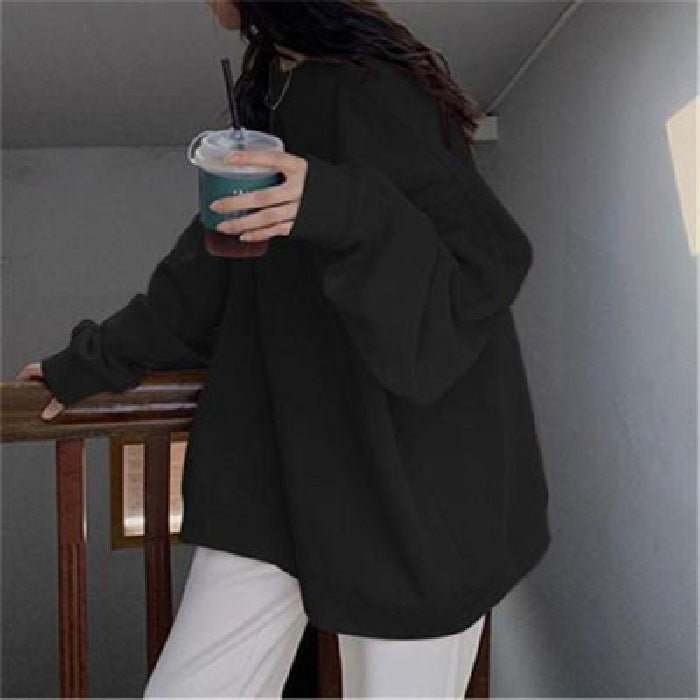 Women’s Casual Loose Sweatshirt – Simple Round Neck Top