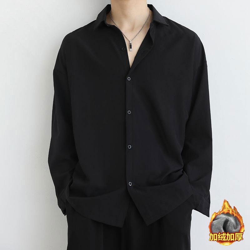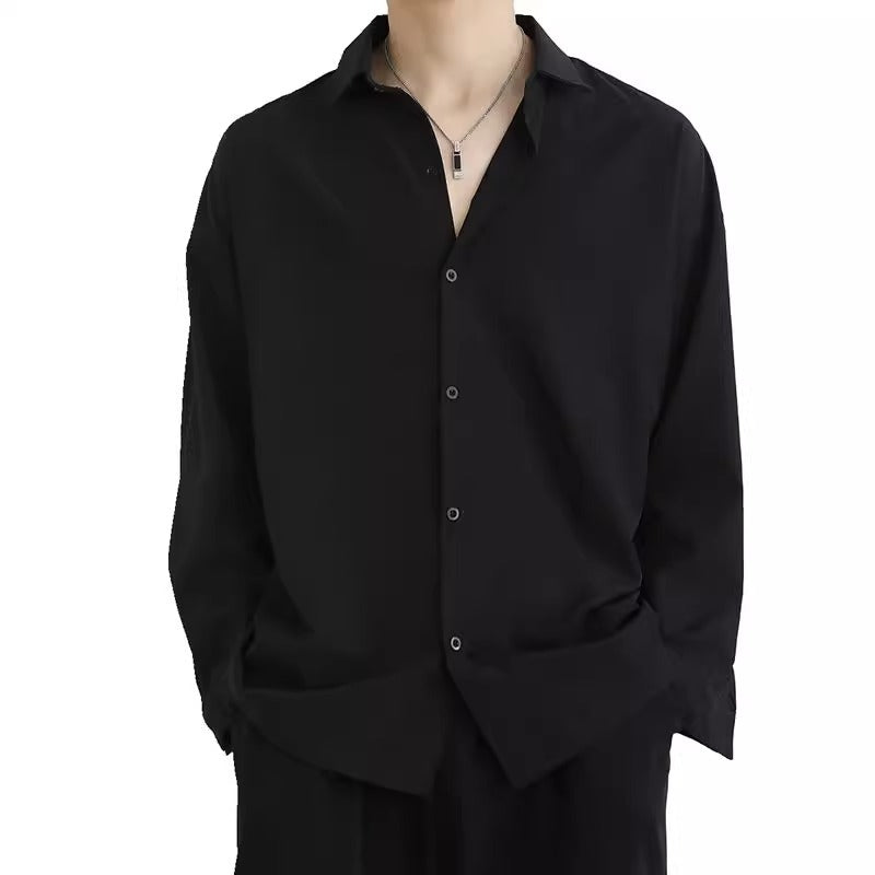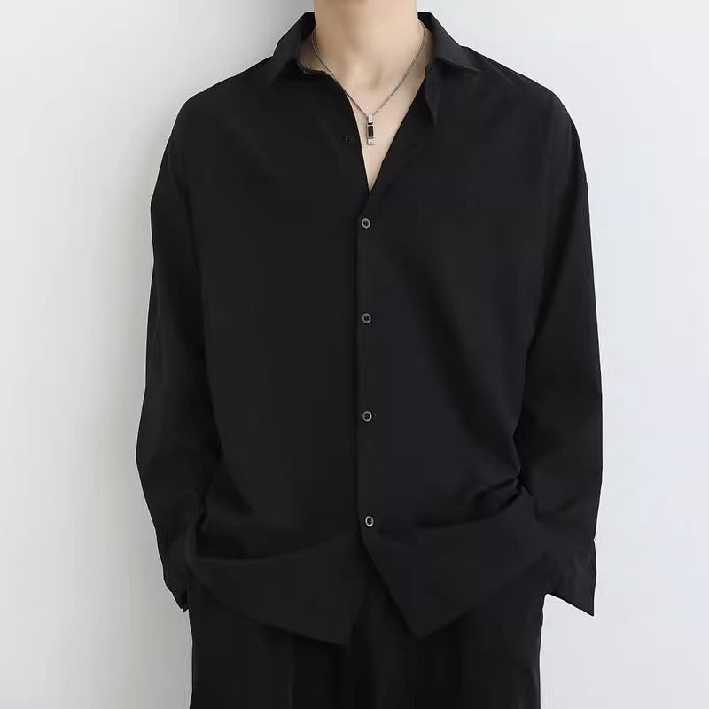 Black Draping Shirt – Loose Long Sleeve Casual Fit