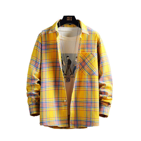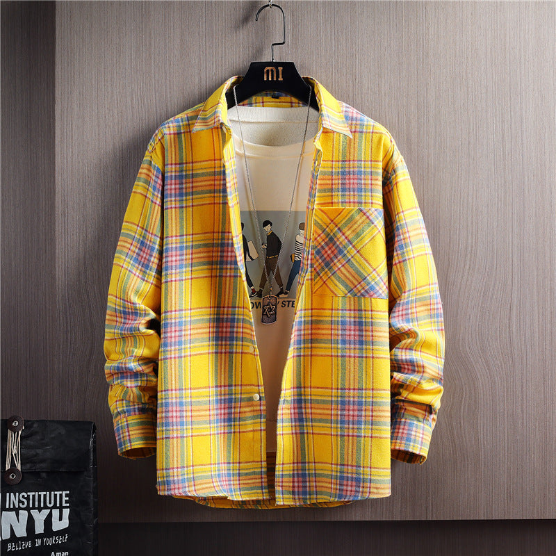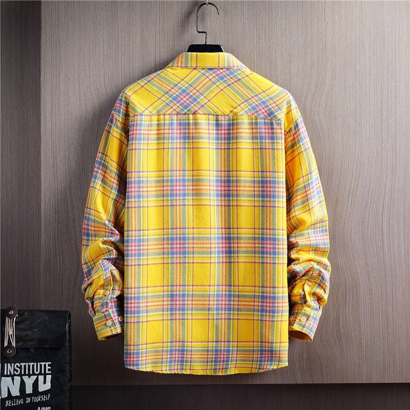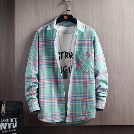 Men’s Contrast Plaid Spring Shirt – Casual & Fashionable