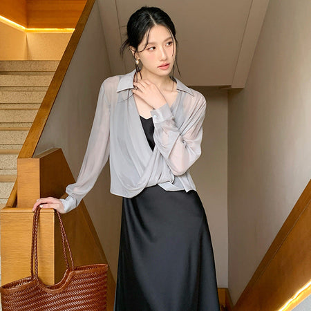French V-Neck Sunscreen Shirt – Elegant Spring Top