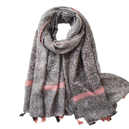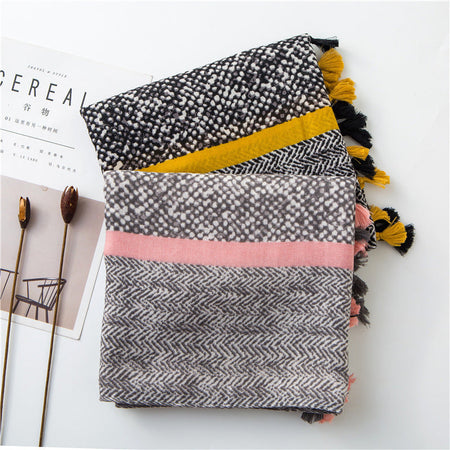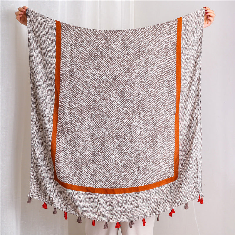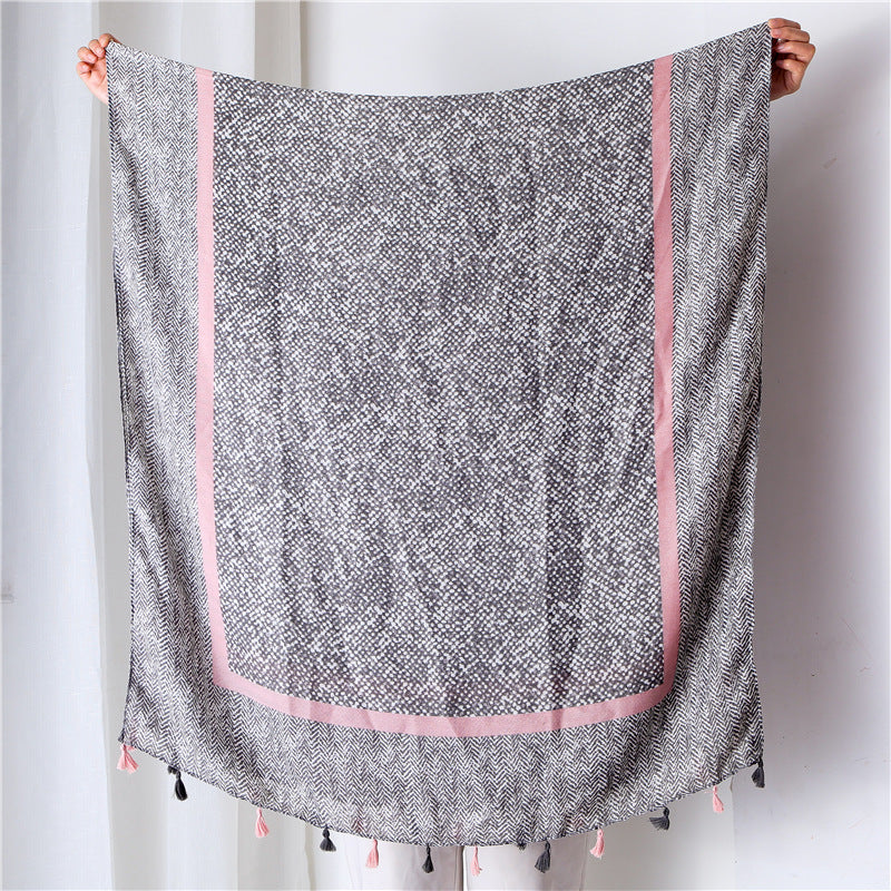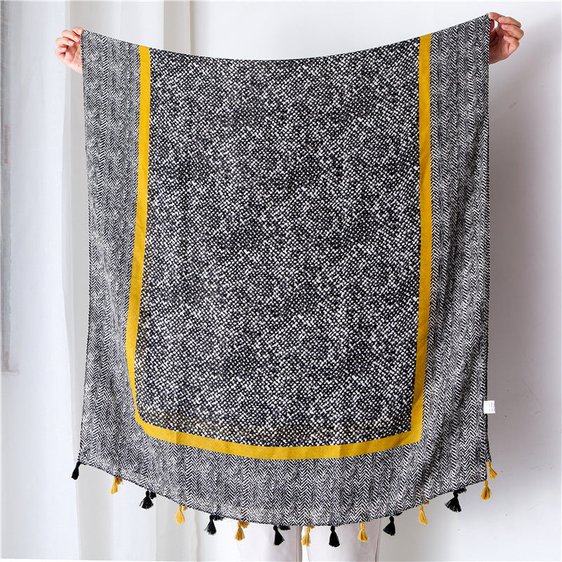 Korean Cotton & Linen Scarf | Snakeskin Leopard Tassel Shawl