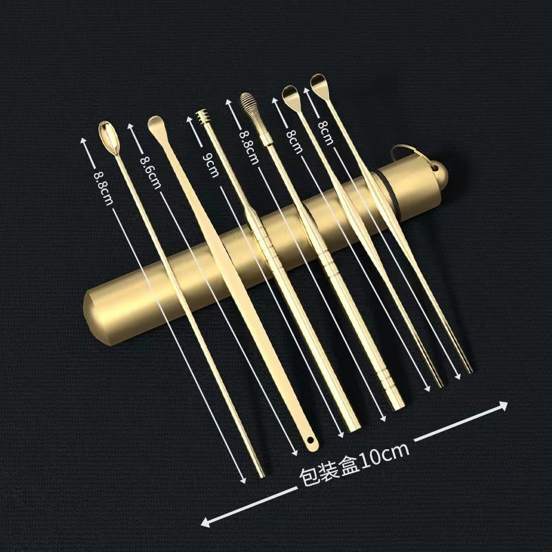 Keep your ears clean safely and efficiently with the Stainless Steel Golden Ear Scoop 6-Piece Set. Perfect for home use, this portable tool set provides all the essentials for gentle ear care.
