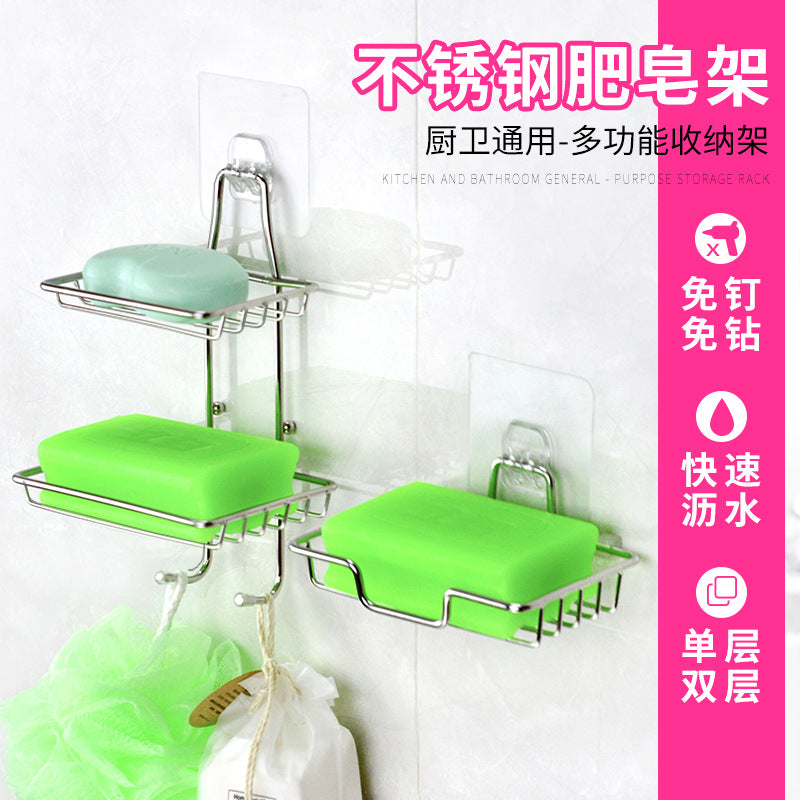 Stainless Steel Wall-Mounted Draining Soap Rack for Bathroom