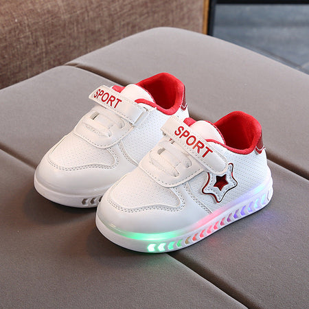 β¨ Brighten up your childβs steps with these adorable luminous star shoes! Designed in stylish Korean fashion, these white LED sneakers are perfect for babies and toddlers who love to move and shine πΆβπ.
