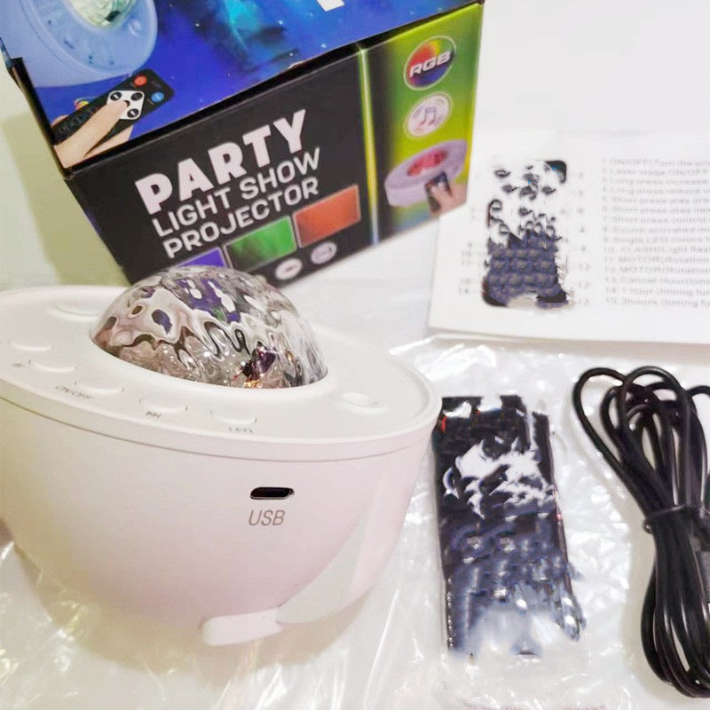 Starry Sky Projection: Projects colorful stars and water wave effects across walls and ceilings.