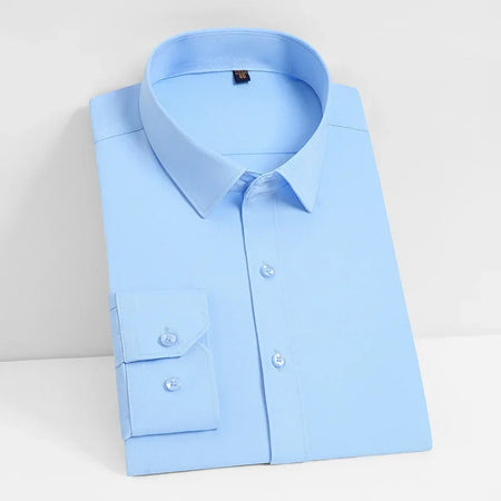 Stay sharp all day long with this pure white slim-fit dress shirt ๐ โ your perfect companion for interviews, meetings, and professional events. This shirt blends Korean style with functional comfort, giving you a polished look without the hassle of ironing. ๐โจ