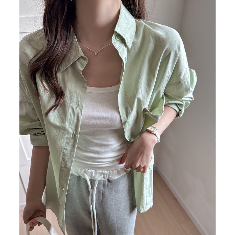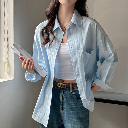 โ๏ธ Oversized & sun-smart! This airy blue Korean-style shirt is made for lazy summer days. Throw it over a crop top, tee or tank for instant style and sun protection.