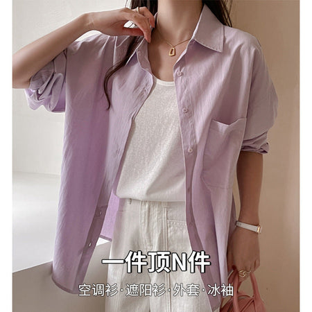 Blue Korean Sunscreen Shirt โ Casual Plus Size Top