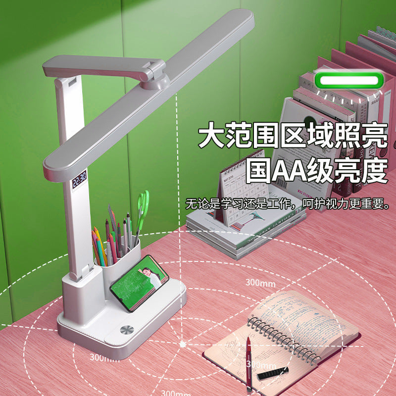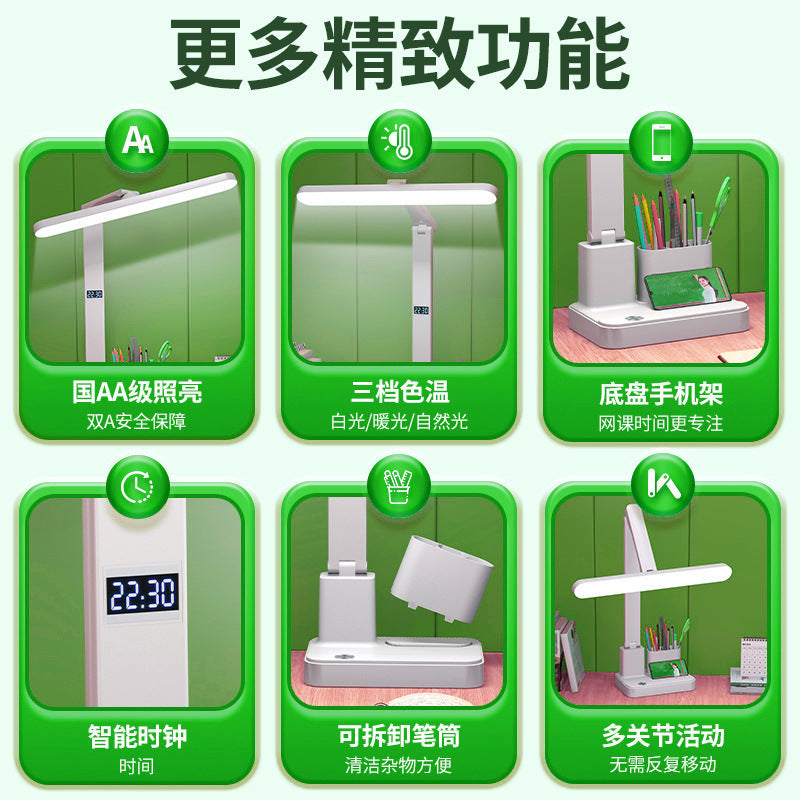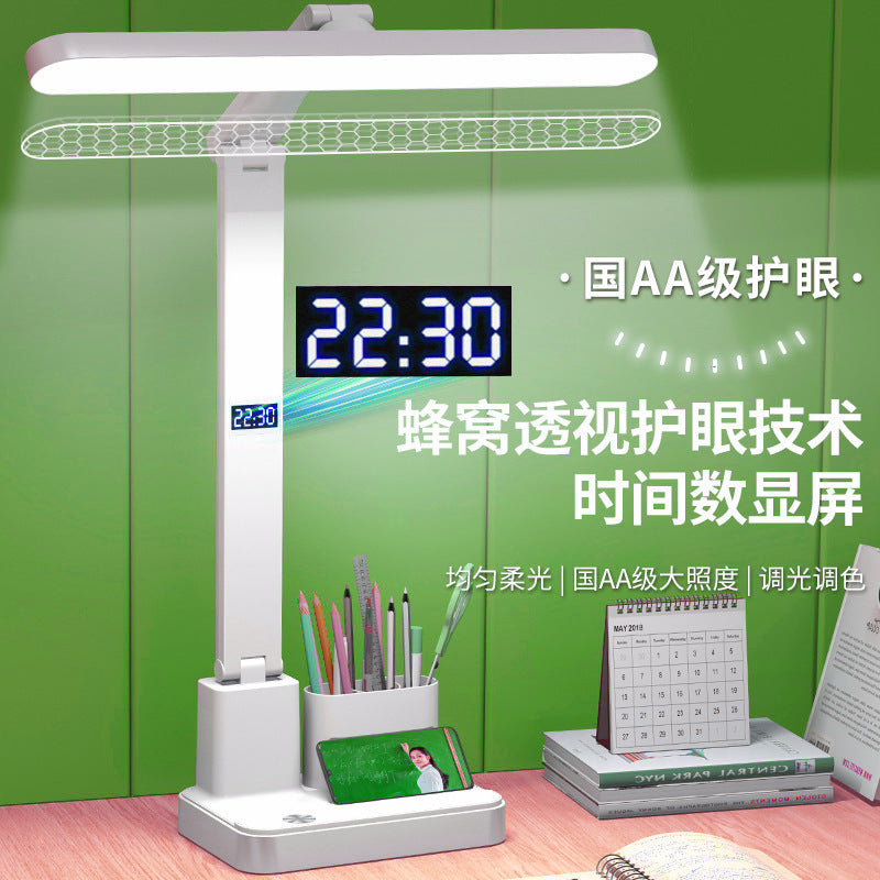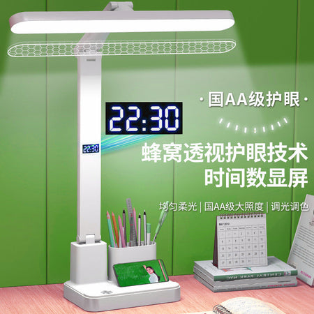 Student Eye Protection Desk Lamp with Clock & Charger