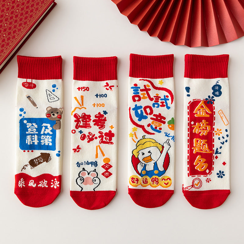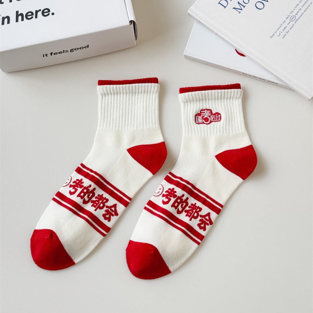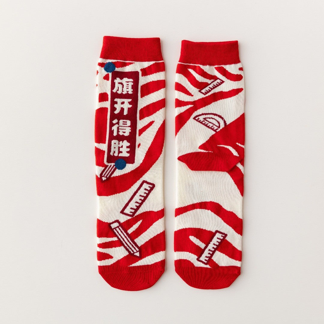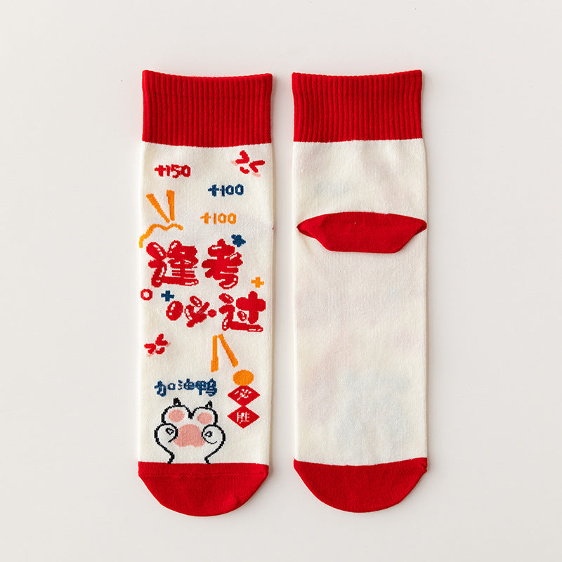 Made from soft, breathable cotton, these mid-calf unisex socks offer all-day comfort during intense study sessions and test days. Featuring inspirational messages like “Every Exam Must Be a Success,” they’re the perfect lucky charm for focused minds and calm hearts 🧦✨.