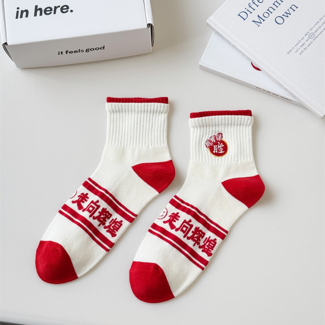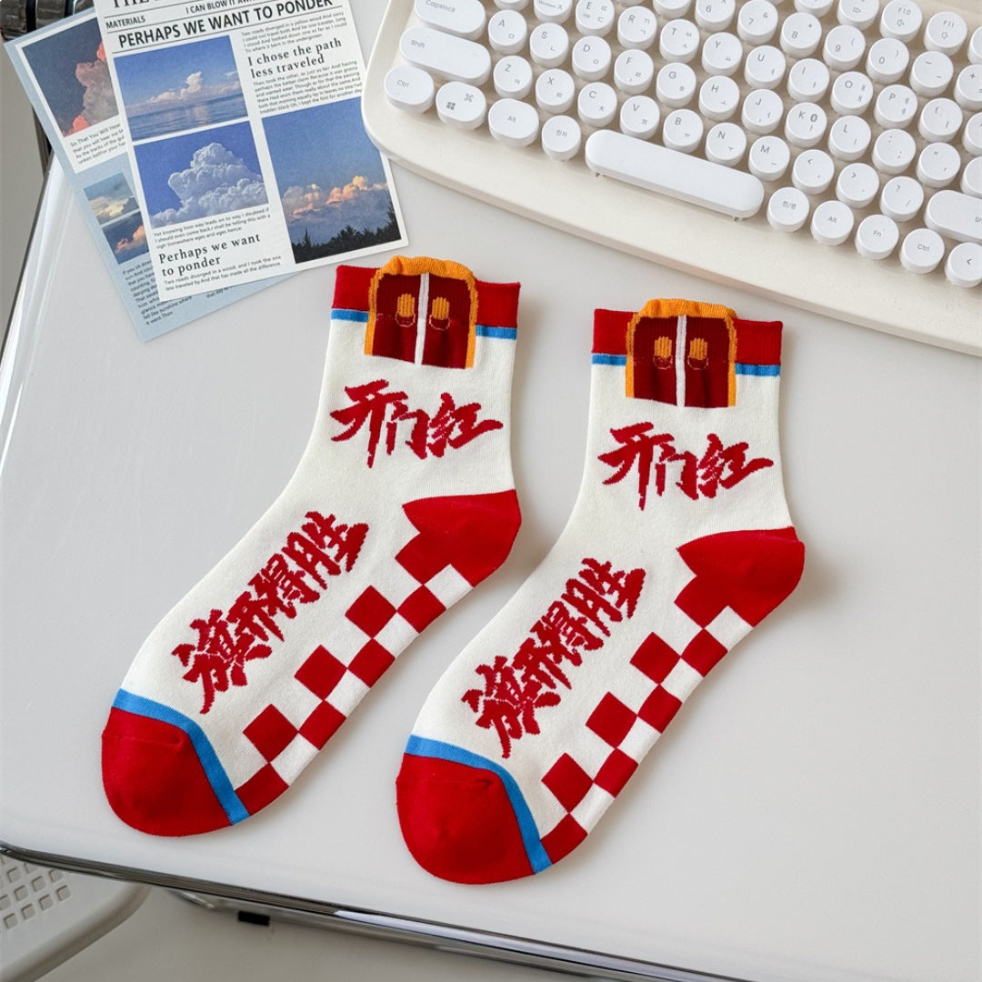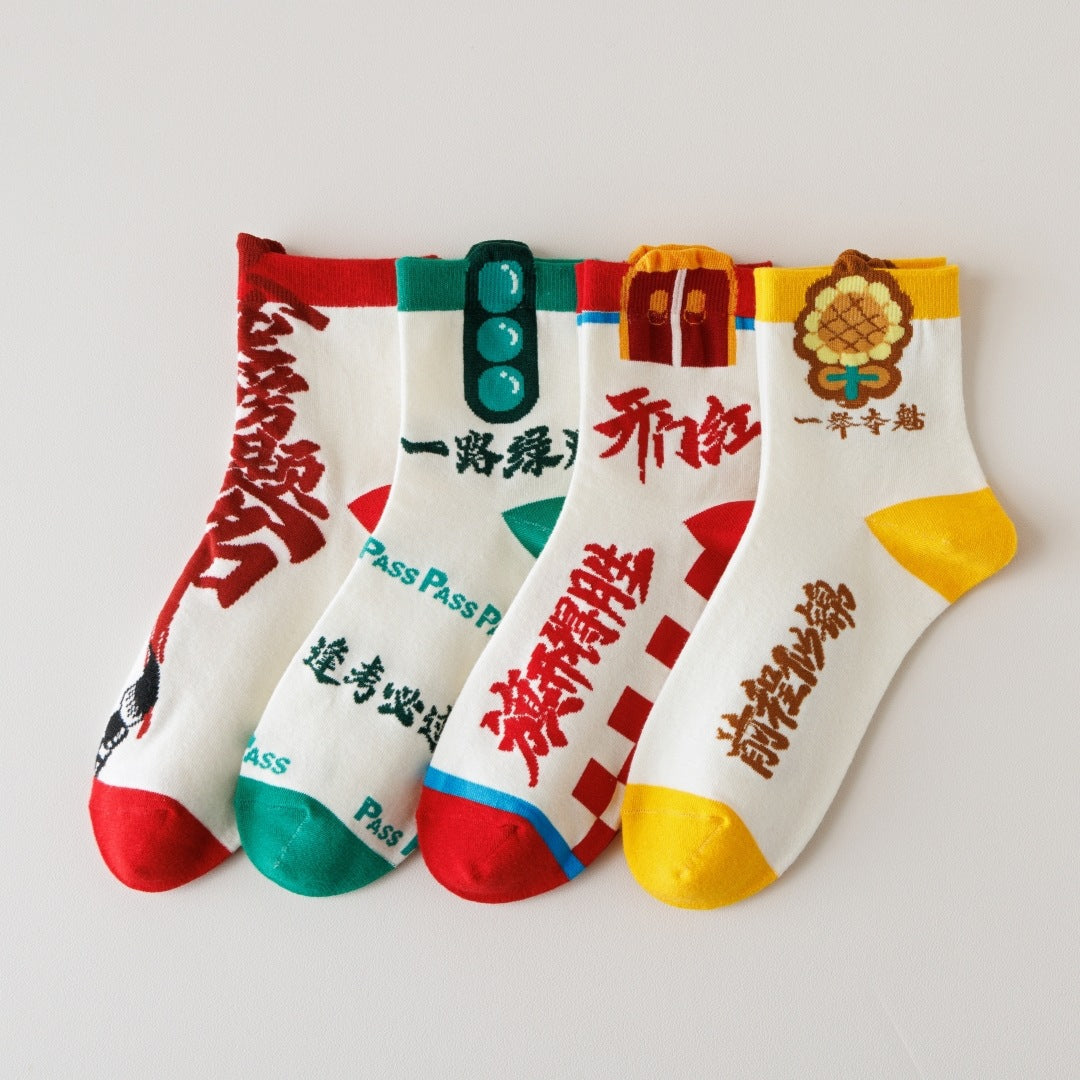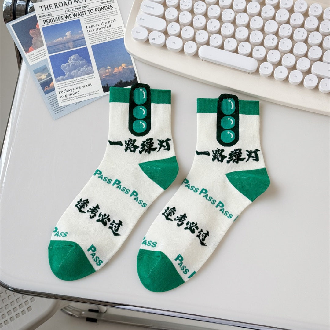 Made from soft, breathable cotton, these mid-calf unisex socks offer all-day comfort during intense study sessions and test days. Featuring inspirational messages like “Every Exam Must Be a Success,” they’re the perfect lucky charm for focused minds and calm hearts 🧦✨.