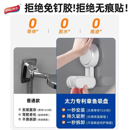 Its punch-free suction sticks firmly to tiles or glass, allowing height adjustment based on the user’s size—great for growing children or multi-person households 👨👩👧👦💧. No drills or screws needed 🛠️❌.