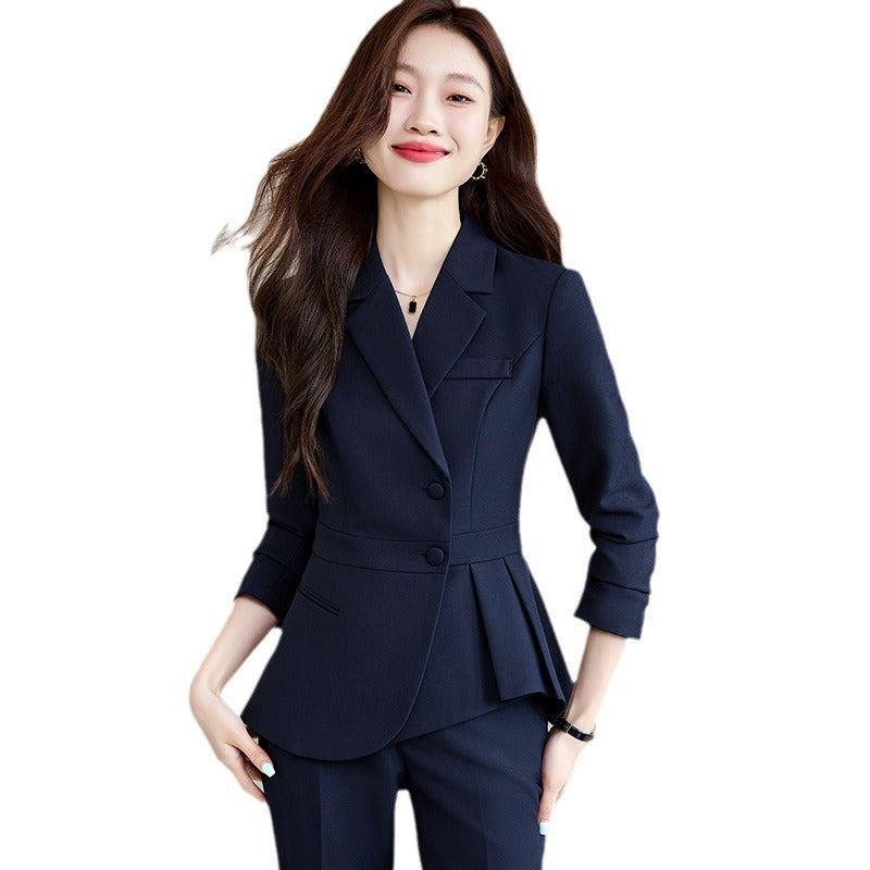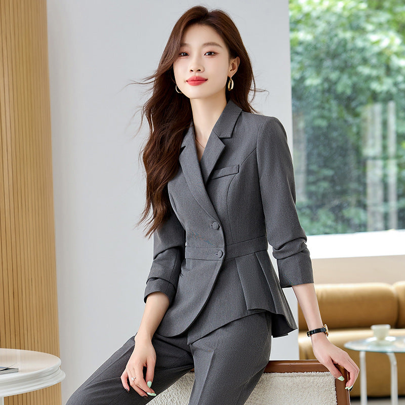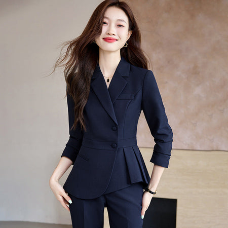High-End Slim-Fit Women’s Ruffled Business Suit