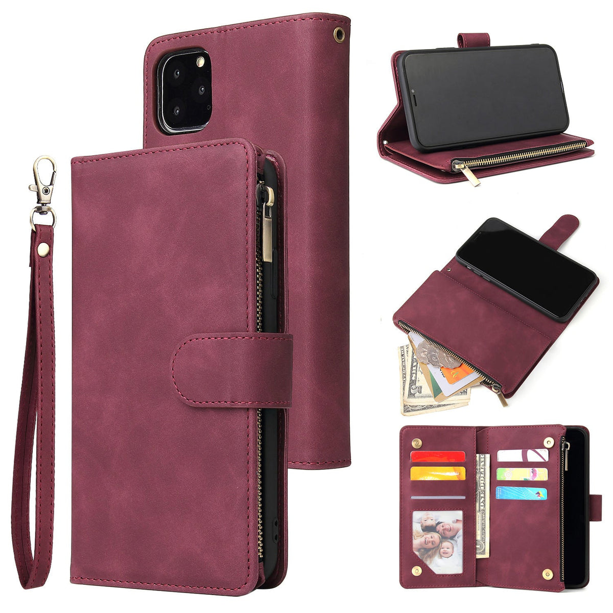 Multi-Card Zipper Wallet Phone Case with Stand
