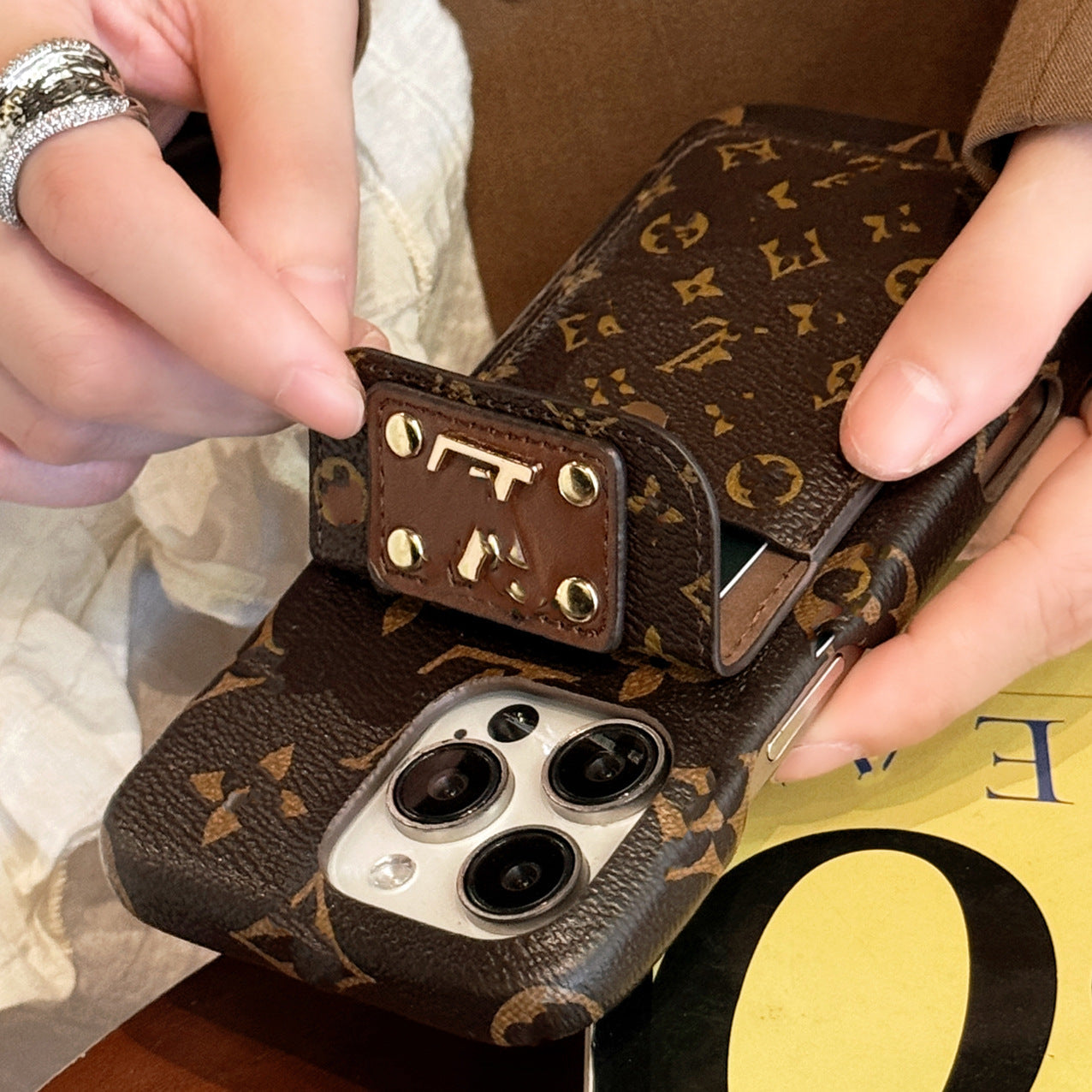 Stay stylish with the Leather Buckle Card Holder case for iPhone 15 & 16 Pro Max.