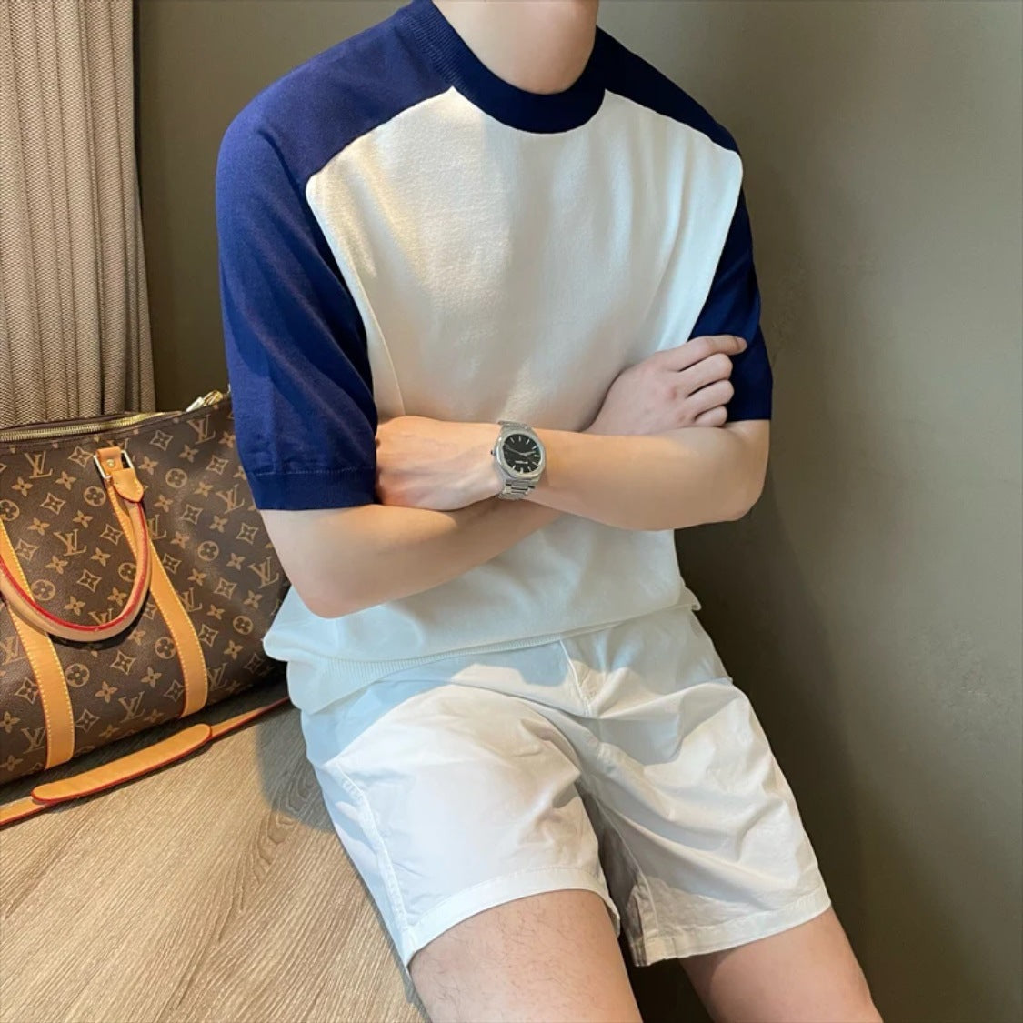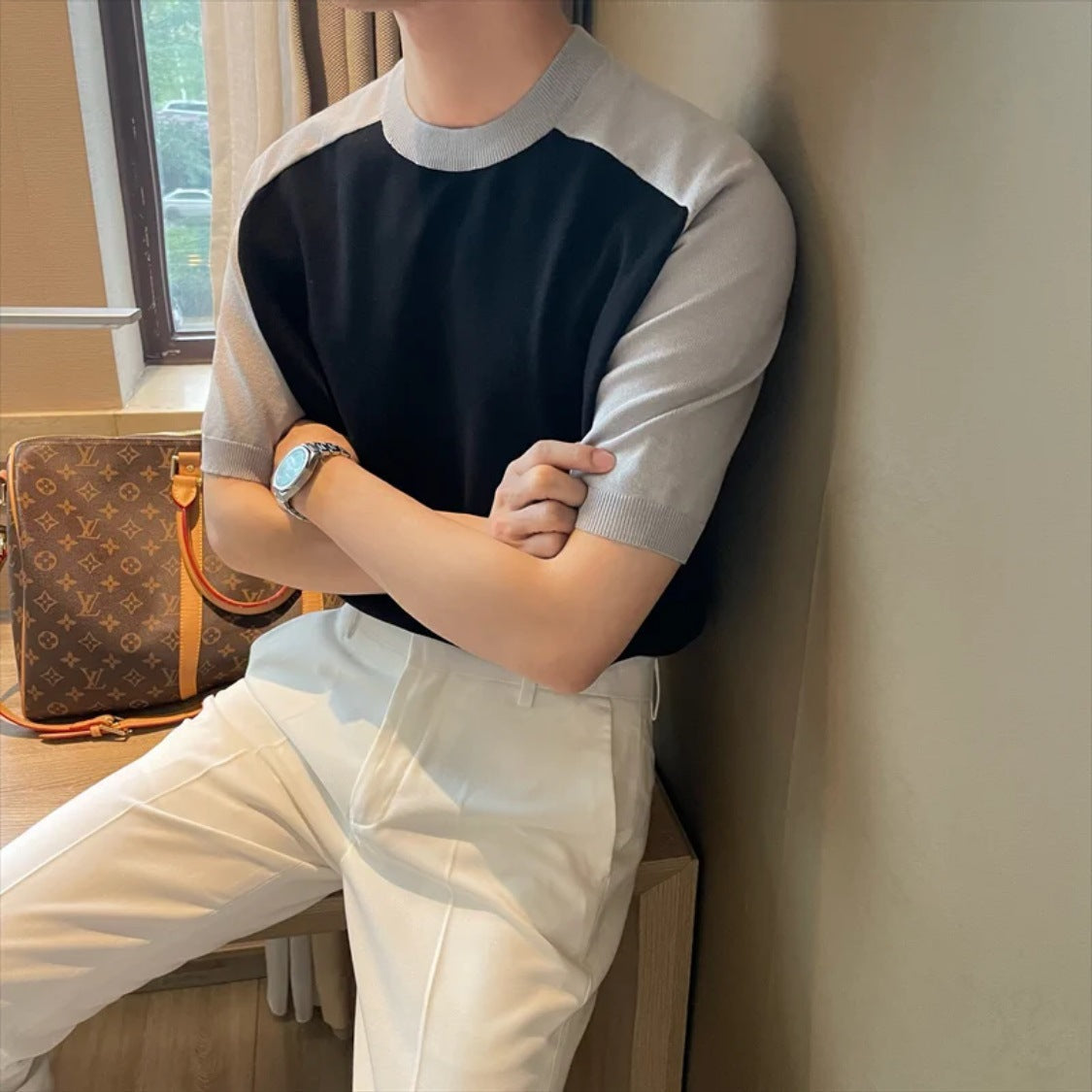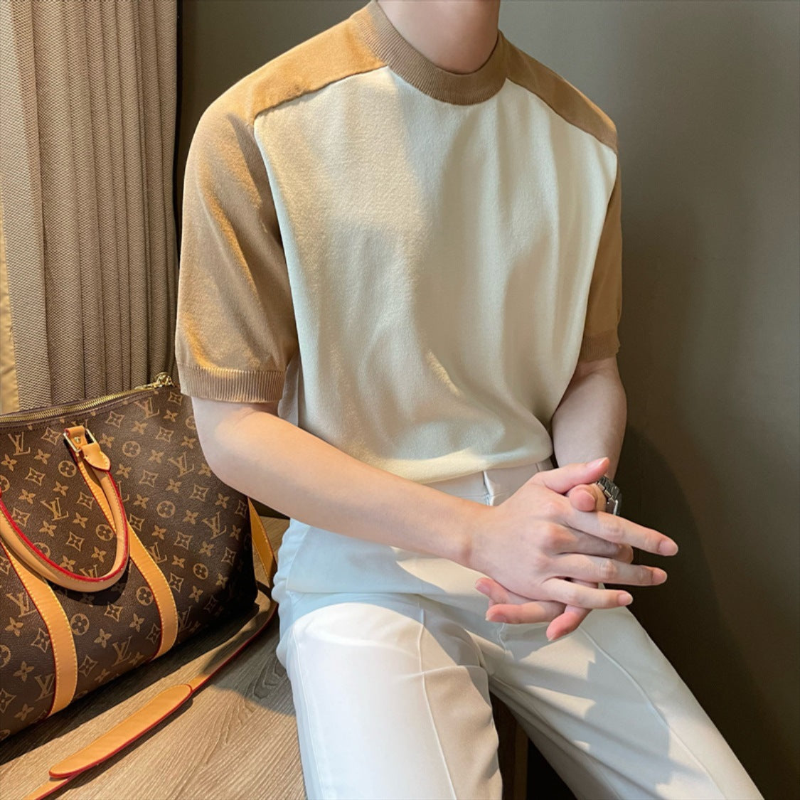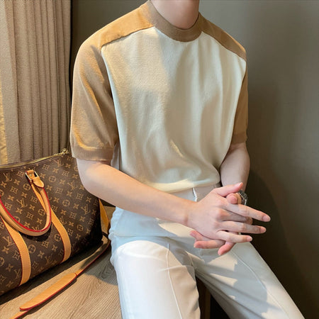 Men’s Slim Fit Ice Silk Base Shirt | Contrast Collar Tee