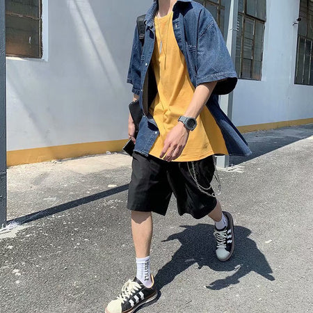 Embrace a mix of casual and stylish with the Men’s Denim Short-Sleeve Shirt—a perfect combination of workwear functionality and trendy Korean fashion. 👖✨ This loose-fitting, all-matching shirt is ideal for summer, offering breathable comfort and a rugged yet handsome look. Whether you're out for a day of work or casual hangouts, this shirt will keep you looking sharp! 💪👕