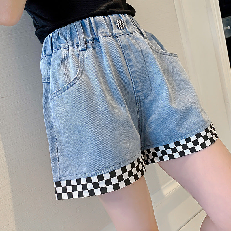 Summer Girls Checkerboard Washed Denim Shorts New Style