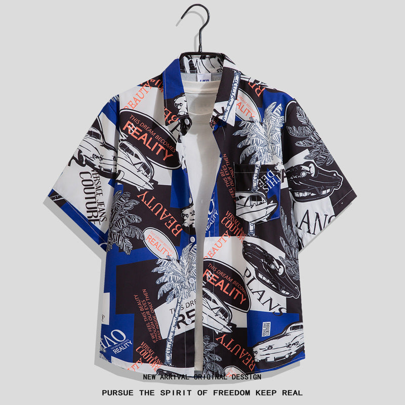 Men’s Summer Graffiti Hip-Hop Loose Casual Hawaiian Shirt
