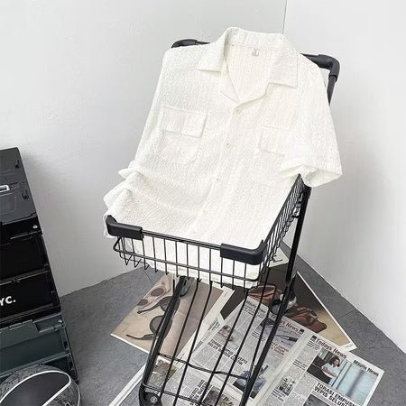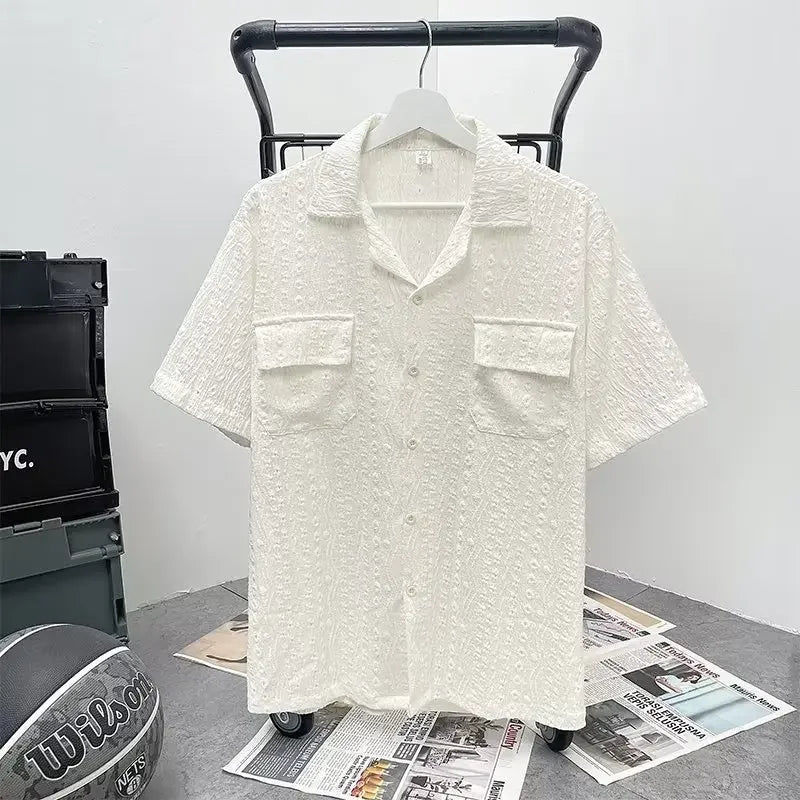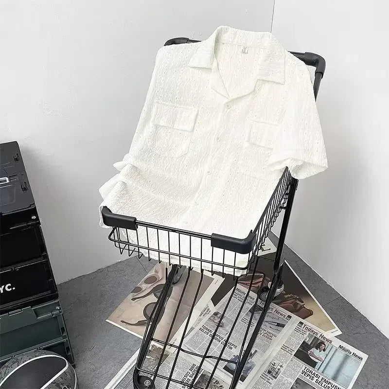 Men’s Hollow Cuban Collar Shirt – Retro Japanese Summer