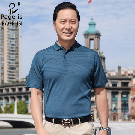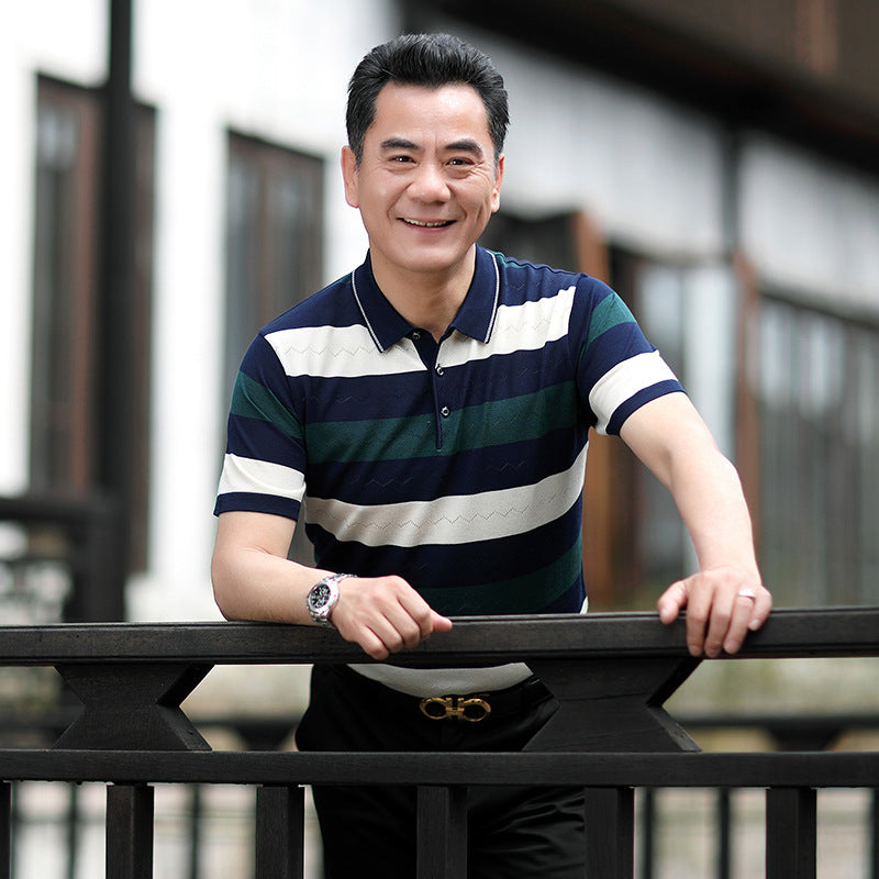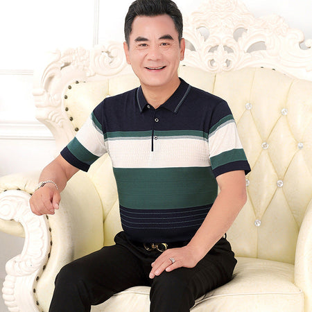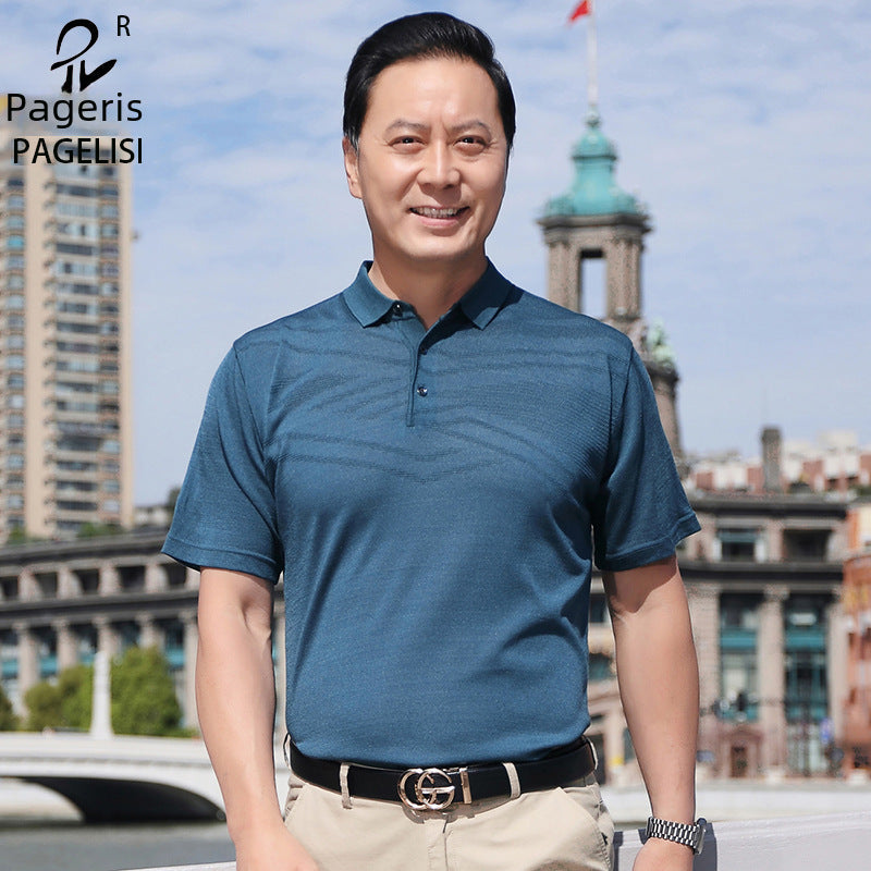 Men’s Ice Silk T-Shirt – Loose Fit for Dads & Grandpas