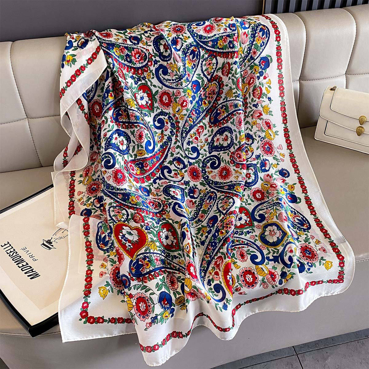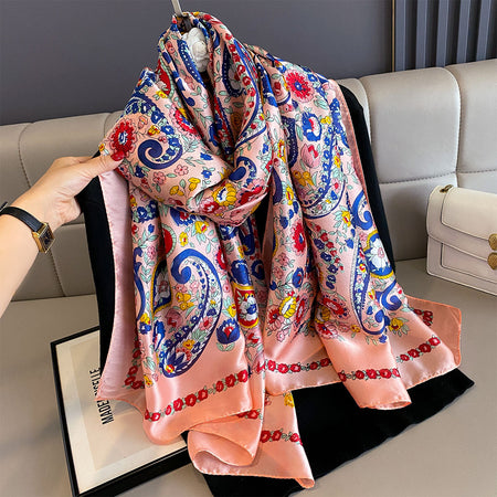 Multi-Color Cashew Flower Silk Scarf