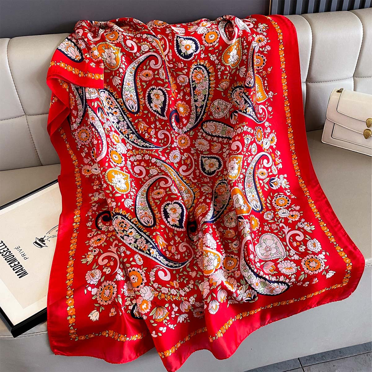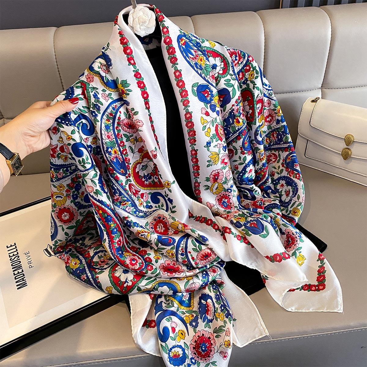 Designed for versatile wear, you can style it as a neck scarf, head wrap, or even a light shawl on cooler evenings. Its elegant floral pattern and smooth texture make it a must-have accessory for every fashion-savvy woman. ππ