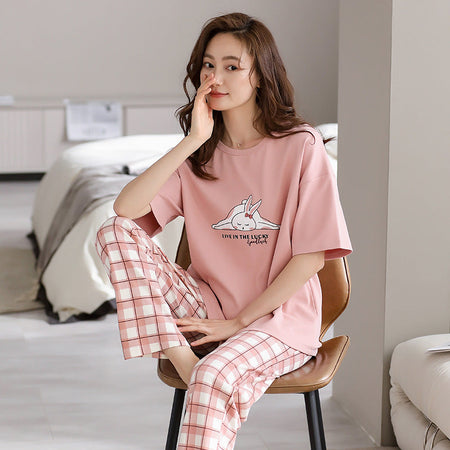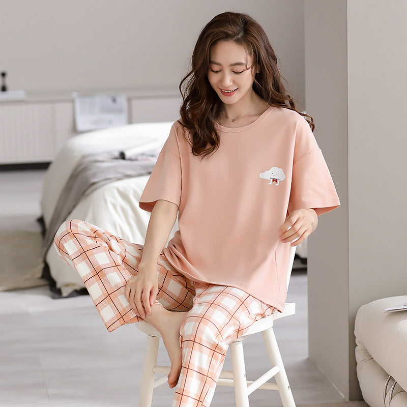 Ladies Short Sleeve Pajama Set β Cute & Light for Summer