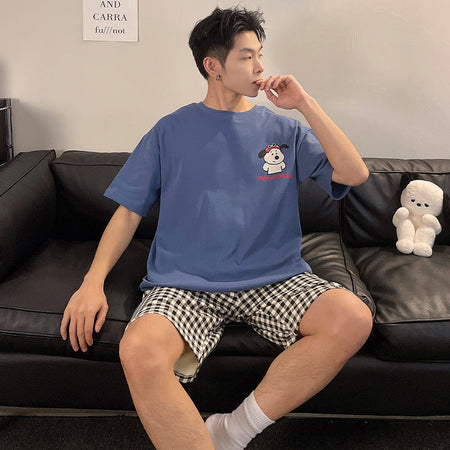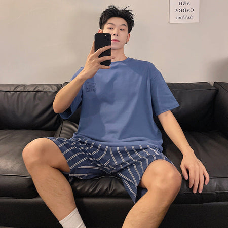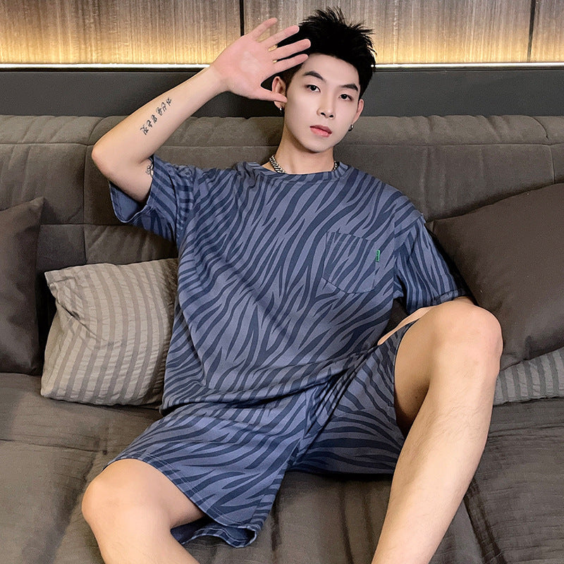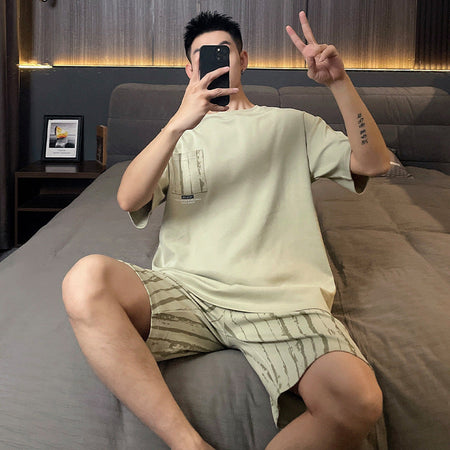 Modal & Ice Silk Men’s Summer Pajamas – Short Sleeve & Trousers