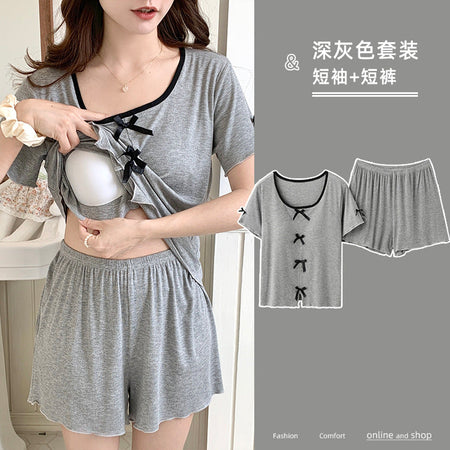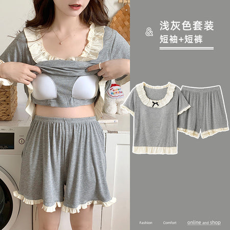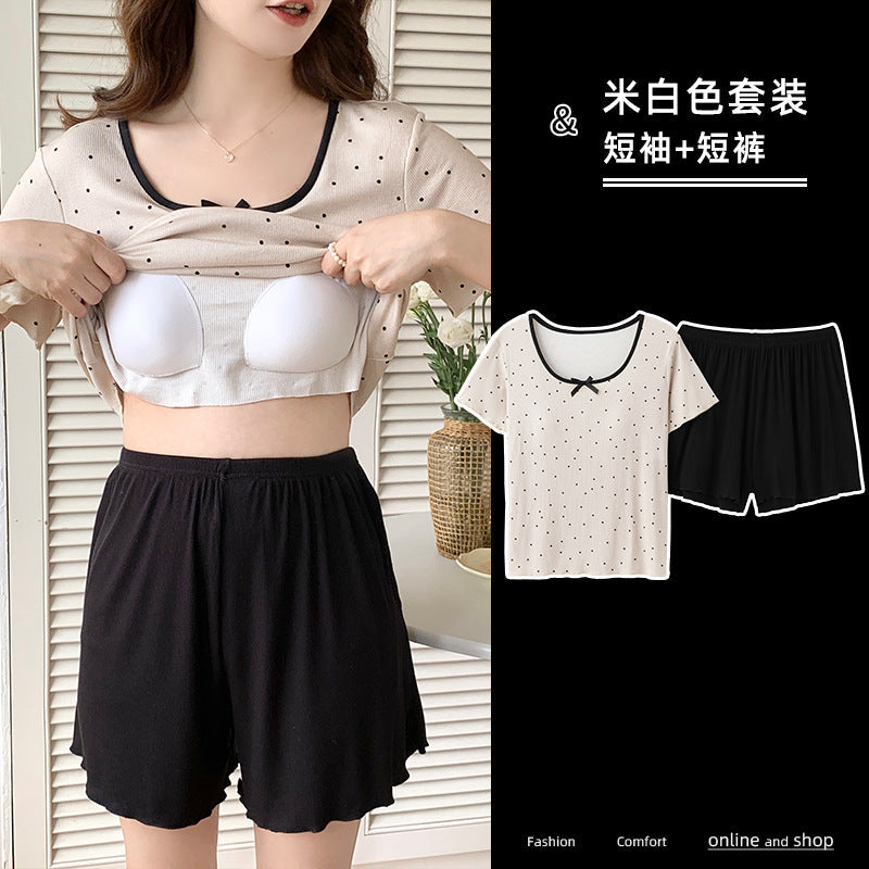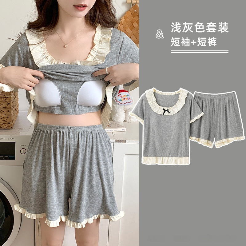 Stay fresh and comfy all summer in this modal pajama set with built-in breast pads for women! πΈπ Designed with a soft round neck top and matching shorts, this two-piece set is perfect for students, teens, and ladies who want simple, breathable comfort ππ.