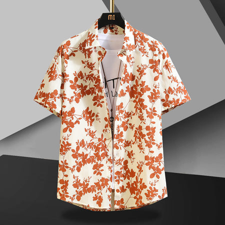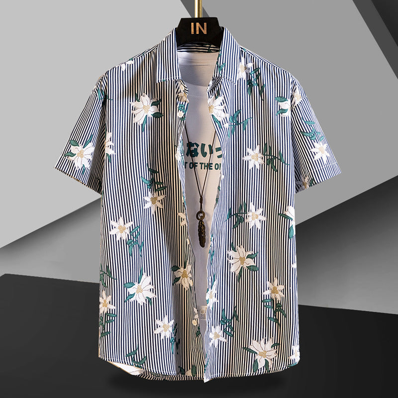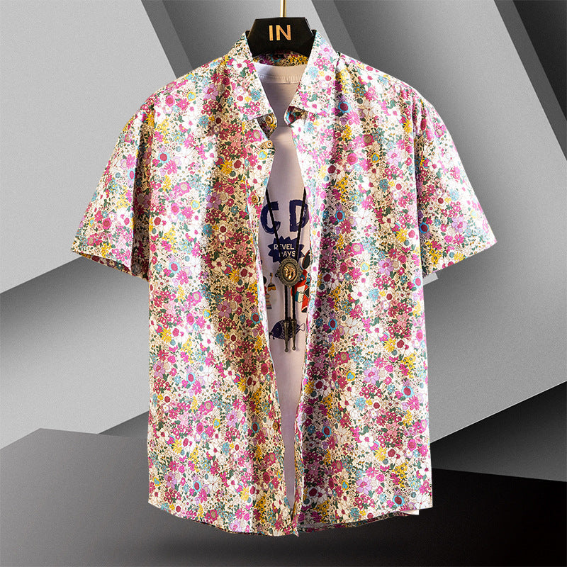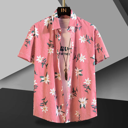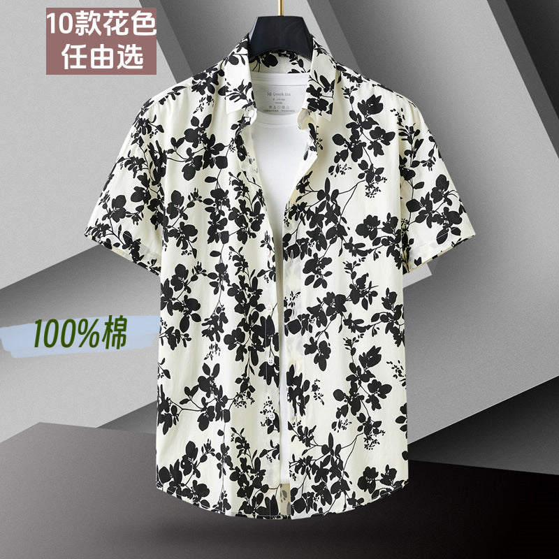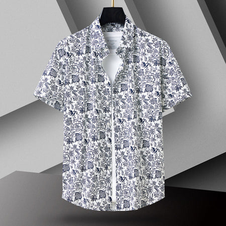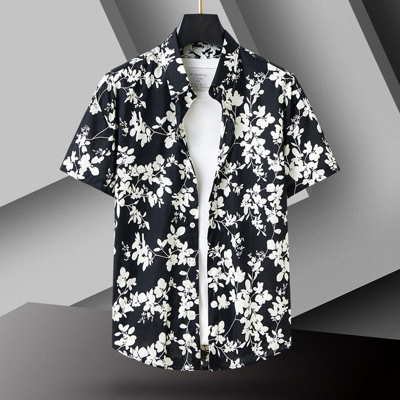 Men’s Slim-Fit Summer Cotton Short Sleeve Printed Shirt