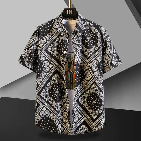 Bring bold style to your summer wardrobe with this slim-fit short-sleeved cotton shirt! 😎 Featuring trendy contrast colors and eye-catching prints, this casual top is perfect for hip hop lovers and fashion-forward men. Lightweight and breathable, it keeps you cool while showing off your unique personality. Ideal for everyday wear or casual hangouts.🔥