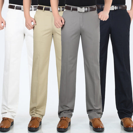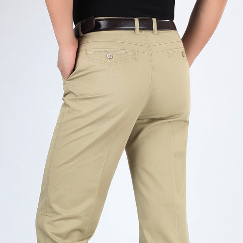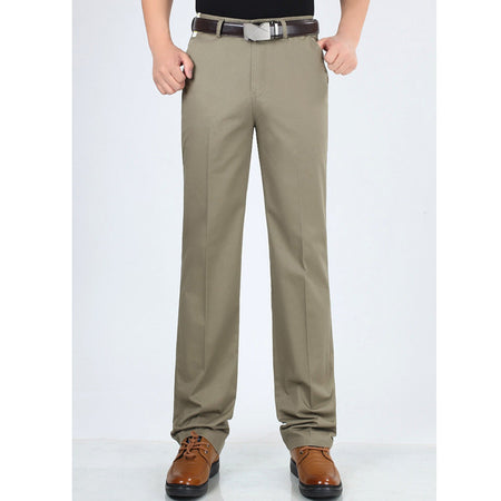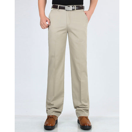 Men’s Cotton Business Casual Pants – Summer High Waist