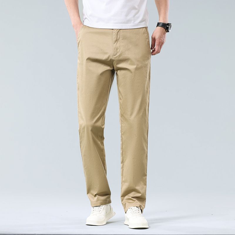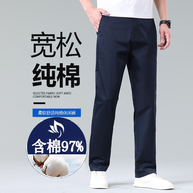 Stay cool and professional with these men’s pure cotton summer trousers. Designed for middle-aged and young men alike, they feature a loose straight-leg cut and diagonal pockets for smart utility.